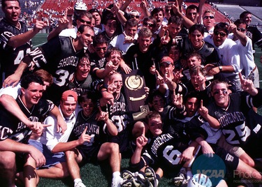 Men's Lacrosse History & Records Print Washington College - 1998 NCAA Champion Complete Men's Lacrosse Record Book Champions Year Champion Head Coach Final Site 2025 Dickinson Dave Webster d. Gettysburg, 13-11 Gettysburg 2024 Dickinson Dave Webster d. Gettysburg, 13-8 Dickinson 2023 Dickinson Dave Webster d. Swarthmore, 13-7 Dickinson 2022 Dickinson Dave Webster d. Gettysburg, 10-9 (OT) Dickinson 2021 Franklin & Marshall Todd Cavallaro No Tournament N/A 2019 Ursinus Gary Mercadante d. Gettysburg, 10-8 Gettysburg 2018 Dickinson Dave Webster d. Gettysburg, 9-8 Gettysburg 2017 Franklin & Marshall Todd Cavallaro d. Gettysburg, 9-8 (OT) Franklin & Marshall 2016 Gettysburg Hank Janczyk d. Ursinus, 9-2 Gettysburg 2015 Gettysburg Hank Janczyk d. Ursinus, 11-10 Gettysburg 2014 Washington College Jeff Shirk d. Franklin & Marshall, 14-6 Washington College 2013 Dickinson Dave Webster d. Franklin & Marshall, 16-2 Dickinson 2012 Dickinson Dave Webster d. Washington College, 11-6 Washington College 2011 Dickinson Dave Webster d. Gettysburg, 6-5 Dickinson 2010 Haverford Colin Bathory d. Gettysburg, 11-8 Gettysburg 2009 Gettysburg Hank Janczyk d. Haverford, 12-5 Haverford 2008 Gettysburg Hank Janczyk d. Washington College, 12-7 Gettysburg 2007 Gettysburg Hank Janczyk d. Washington College, 11-4 Gettysburg 2006 Gettysburg Hank Janczyk d. Washington College, 8-4 Gettysburg 2005 Gettysburg Hank Janczyk d. Washington College, 8-6 Gettysburg 2004 Gettysburg Hank Janczyk d. Washington College, 7-6 Washington College 2003 Washington College J.B. Clarke d. Gettysburg 11-2 Washington College 2002 Gettysburg Hank Janczyk d. Washington College, 12-10 Gettysburg 2001 Gettysburg Hank Janczyk d. Washington College, 15-7 Gettysburg 2000 Gettysburg Hank Janczyk 1999 Gettysburg Hank Janczyk 1998 Gettysburg Hank Janczyk 1997 Washington College John Haus 1996 Washington College John Haus 1995 Gettysburg Hank Janczyk 1994 Gettysburg Hank Janczyk